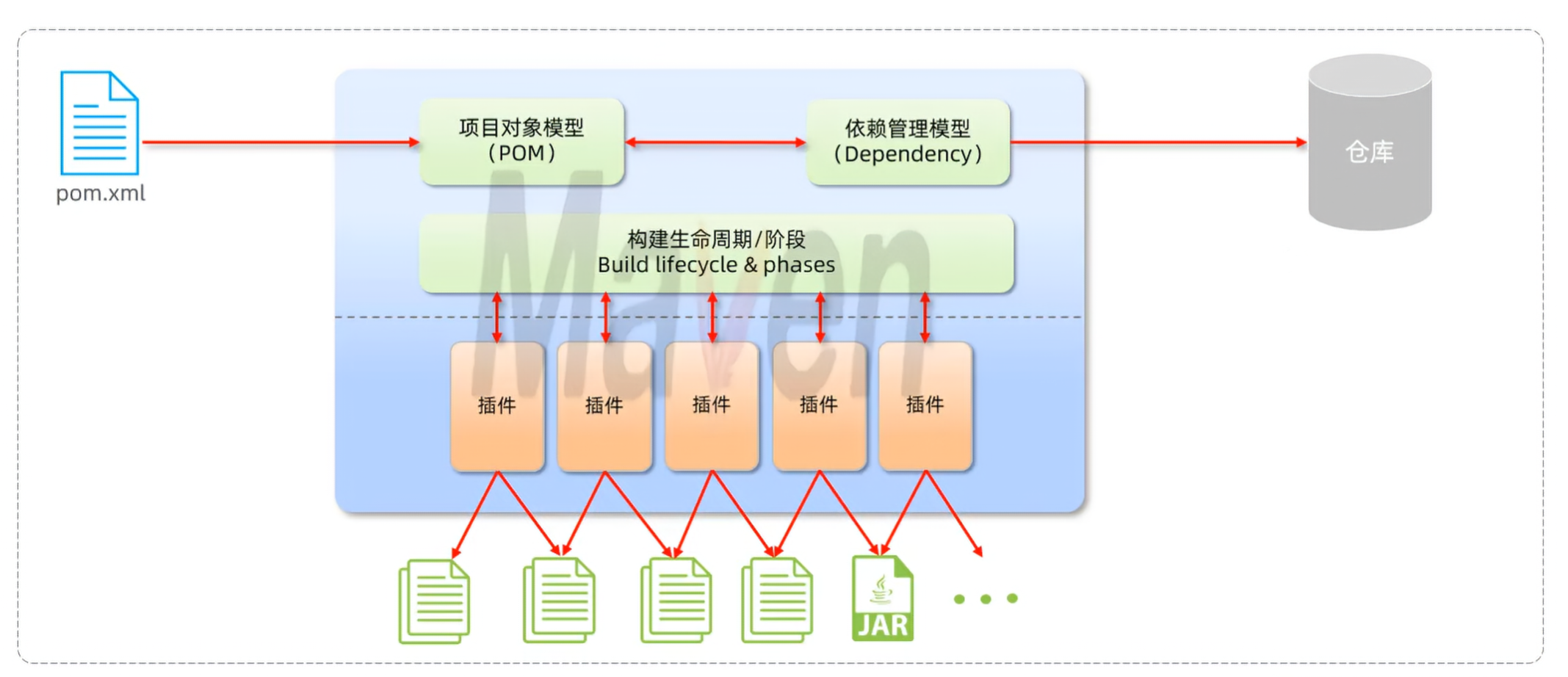 - pom:父工程或聚合工程,该模块不写代码,仅进行依赖管理