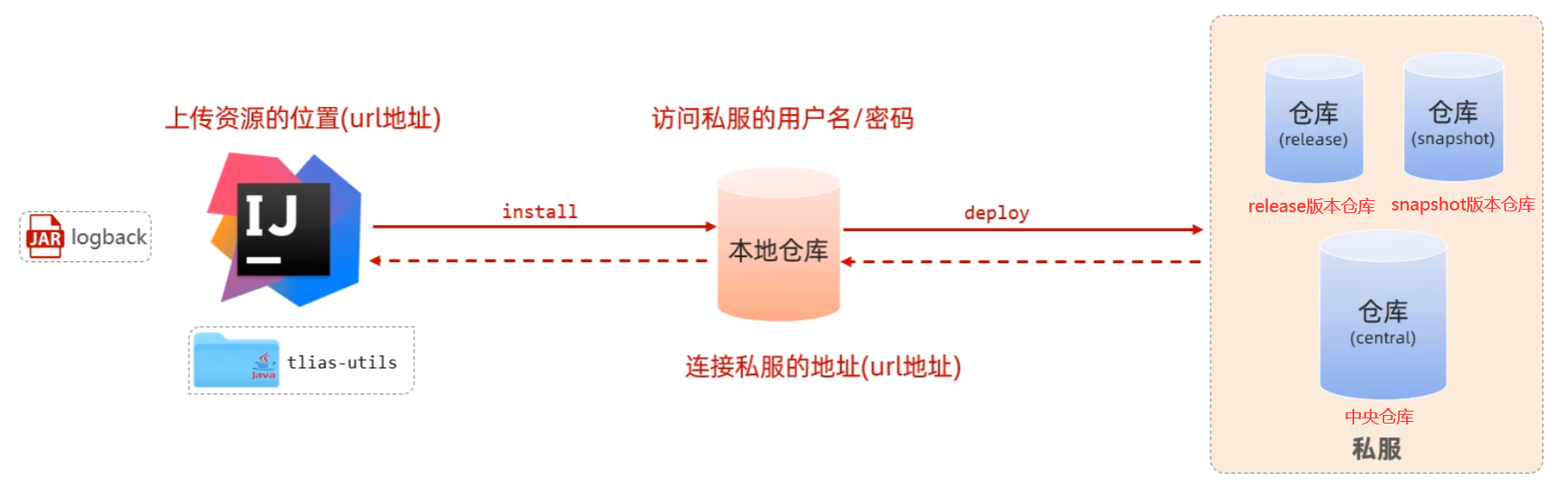 SNAPSHOT,则会上传到快照仓库,其他的一律上传到发布仓库