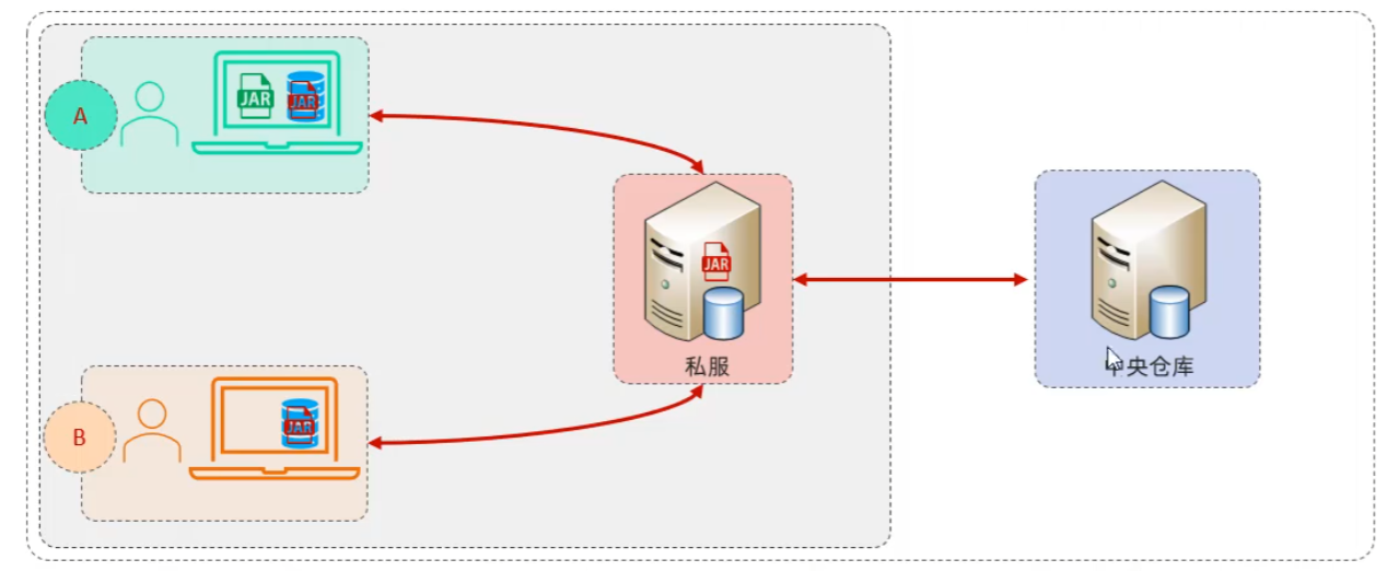 私服是一种特殊的远程仓库,它是架设在局域网内的仓库服务,用来代理位于外部的中央仓库,用于解决团队内部资源共享与资源同步问题。