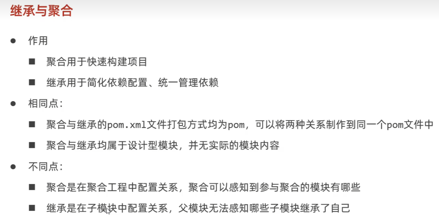 聚合:将多个模块组织成一个整体,同时进行项目的构建,可以实现一键打包,一键安装等操作