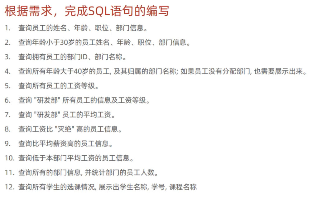 根据子查询位置,分为:WHERE 之后、FROM 之后、SELECT 之后