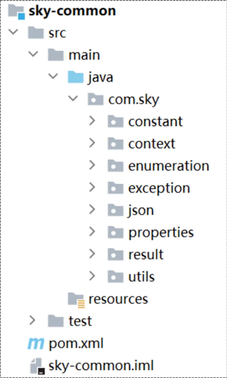 | sky-common | 子模块,存放公共类,例如:工具类、常量类、异常类等 |
