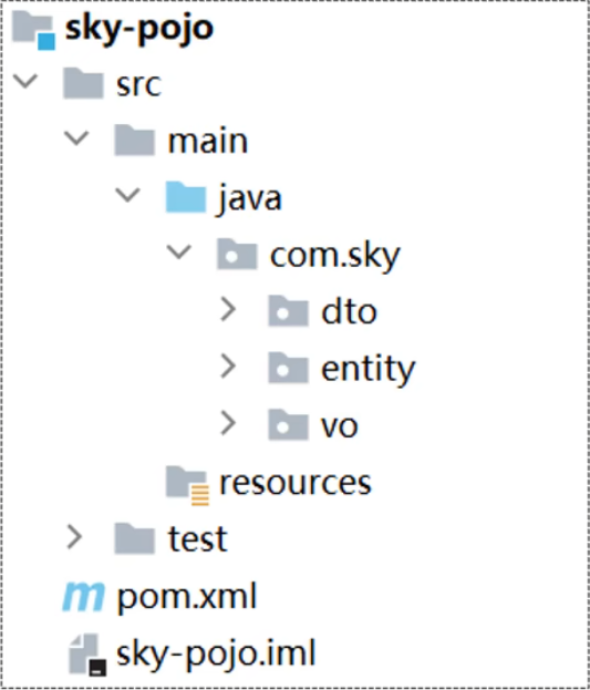 | sky-pojo | 子模块,存放实体类、VO、DTO 等 |